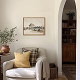 KBKBART Framed Vintage Neutral Wall Art Prints, Antique Rustic Muted Landscape Canvas Painting, Retro Countryside Nature Wilderness Illustrations Farmhouse Decor, Neutral Vintage Decor Ready To Hang