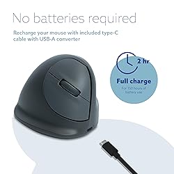 Ergonomic Vertical Design: Designed in the Netherlands, this ergonomic mouse brings your hand and wrist into a natural, relaxed position. It minimizes stressful small movements and enhances blood circulation, which effectively prevents Repetitive Strain Injuries (RSI), promoting a healthier and more comfortable computing experience. Optimal Support and Comfortable Grip: Enjoy a comfortable grip with the mouse's round shape and specially developed surface catering to your thumb and little finger. This innovative design not only offers optimal support but also reduces muscle strain, ensuring 100% comfort even during extended use. Multi-Device Bluetooth: this mouse has a Bluetooth 5.0 connection. Rechargeable via USB type-C cable (with USB-A converter). It can last up to 500 hours use after a single full charge of 2 hours. Efficient Operation and Wide Compatibility: With two buttons and a scroll wheel, navigating your device is intuitive and efficient. The adjustable DPI ranging from 500 to 1750 ensures precise control tailored to your preferences. Compatible with Windows, Mac, Android, and Linux, this mouse suits a variety of devices, including PCs, laptops, tablets, and MacBooks. The Sustainable Choice: Make a conscious choice with R-GO HE mouse, crafted from fully recycled plastic and packaged without plastic. This vertical mouse is AGR-certified. SKU CODE: RGOHEBAMRWL