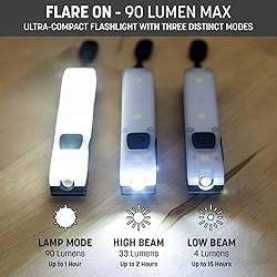 HIGH QUALITY, COMPACT, LIGHTWEIGHT, TRAVEL SAFE, EDC GEAR - Premium 90-lumen key chain flashlight with a bright front beam and one-of-a-kind lamp mode. Comes with a detachable pocket clip and paracord zipper pull to easily attach to a key ring. Flat pen flashlight form is not bulky and comfortable in your pocket. It is one of the top keychain mini flashlights with high lumens. IPX4 Water and Dust Resistant. RECHARGEABLE - No need to replace expensive batteries for your LED flashlight. Just charge this key chain light using the included USB-C cable. Fully charged in less than 90 minutes for a full hour of continuous usage at maximum brightness. This is one of the most popular keychain flashlights, highest quality small flashlights, and best keychain accessories. VERY CONVENIENT - The Pocket Flare key chain light is small enough to fit comfortably in any pocket or purse. This innovative mini keychain flashlight can light up a keyway or find something you dropped in the dark. It is even a great keychain work light. This tiny flashlight features a 4-way tactile switch - Front Beam Low (4 lumens up to 15 hrs) / Front Beam High (33 lumens up to 2 hrs) / Lamp (90 lumens up to 1 hr) / OFF - You don't need to hold the button to keep the light on. EXTREMELY VERSATILE - Clip this micro LED flash light to a pocket, backpack, bag, or purse. Attach it to virtually any key chain or key ring. This led torch is even an excellent handbag light. The Pocket Flare Module is also compatible with the modular Keyport Pivot and Keyport Slide 3.0 key organizers. PURCHASE WITH CONFIDENCE - The Keyport Pocket Flare LED rechargeable light comes with a one-year limited warranty & is backed by our 30-day satisfaction guarantee. Together with a Keyport key organizer, this useful mini light makes a top-rated mini flashlight keychain, a unique gift, and a great stocking stuffer.