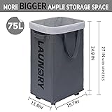 Goodpick Hamper with Wheels, 2-Pack 75L Foldable Laundry Baskets with Removable Wash Bags, Dirty Laundry Basket for Corner Dorm,Grey