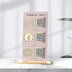 PREMIUM MATERIAL: Our sign is made of 5.5 x 10.3 inches, 3mm (0.12 inch) thick clear acrylic; This sign has gold and silver mirror bases. An amazing acrylic business symbol. FULL CUSTOMIZATION: Click "Customize Now", fill in the social App ID and upload the QR code; choose the background color and matching base, and leave the rest to us (if you have a unique idea, you can contact us directly.) QR CODE SIGNS: There are a variety of social media to choose from, Instagram, Paypal, Wifi, Venmo, Zcash, Cash, Twitter, Pinterest, Website, Snapchat, Youtube, WhatsApp, Google, Zelle etc! (Choose two at most, if you need multimedia sign, you can enter the store to buy). PERFECT: QR code signs allow your customers to easily and quickly contact you via social media, your website, or a custom landing page you create when you answer a question about your service or product! APPLICABLE OCCASIONS: This business scan logo can be used in personal studios, restaurants, hotels, hair salons. This is perfect for any size business and is sure to grab attention for your business.