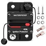 Protect your system: The circuit breaker can protect car audio, low-voltage, and high-current electrical equipment from current overload damage. When the circuit current exceeds the rated current, the fuse burns out and automatically disconnects, which can well protect the electrical appliances. Allow to charge or maintain the battery without having to disconnect all the wires. Great Construction: Made of phenolic plastic housing, the amp breaker has resistance to cold, heat, splash, and dust. Nilight Car Audio Fuse Holders 100% Pass professional electrical performance test and aging test. Easy to use: 40A inline fuse circuit breaker is simple to use, only requires manual reset to close or open. The packaging also come with 2 screws, 4 copper washers, and 2 pure copper battery lugs, no need to buy other accessories, making the installation more convenient. Application: Mainly used on car audio and video systems, boat, truck, bus, RV, ATV, marine, etc, and DC sound amplifier system overload protection. The waterproof circuit breaker is surface Mount, mount on panel or firewall.The unique push button reset can also be used as a kill switch. Package Include: 1 x 40 amp circuit breaker, 2 x wire lugs, 4 x copper washers, 2 x Screws.