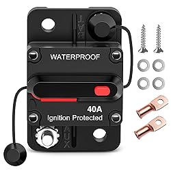 - Nilight 40A Circuit Breaker Resettable 12-48V DC Manual Reset w/Copper Wire Lugs Surface Mount Overload Protection for Car Audio Sound Amplifier System RV Marine Boat Truck