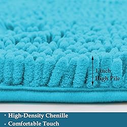 【Soft & Thick Bath Mat Set】:Bathroom rug sets are made of high-quality fluffy plush chenille, compared to the normal quality of 1350g/sm, this plush chenille carpet set thick and bushy, quality up to 2000g/sm weight, thus making the bath mats amazing soft and cozy like a comfortable quilt protector for your feet. 【Ultra-Absorbent & Quick Dry】: Our bathroom mats set super-absorbent bath mat's microfiber surface can quickly soak up an impressive amount of water, and our luxury performance chenille microfibers can quickly absorb moisture from your feet when you step out of the bath, making your feet feel the ultimate luxury enjoyment, spruce up your powder room for maximum serenity and warmth. 【 Non-Skid Bathroom Set】:The Bathroom mat set is equipped with PVC backing, which helps keep bathroom mats firmly in place. The backing gives this bath rug unmatched durability essential for high-traffic areas in your home. Please note not to place the mat on a wet surface, and make sure that the floors are dry underneath the rug, to prevent slippage. 【Multi-Use Bath Mat Set】:You will get a 20"x32" & 16"24" Bath rug set, the perfect size and unique design lend a beautiful rich decor element for your bathroom, kitchen, bedroom, living room, and door entrances, also it can be applied in stairs, balcony, laundry room, pet house, pet rug, and more. 【Easy to Care】:Please wash cold, hand wash, hang to dry, or air-dries flat. Do not use chlorine bleach or softener, Do not Bleach or Dry Clean. Also, our bath mats are super easy to clean and fade-resistant, you can simply pick up and shake the chenille bath mats set to freshen giving the bathroom rugs pile new life.