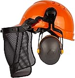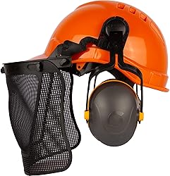 LIBUS Forestry Safety Kit – Integrated Face, Hearing & Head Protection Set with Mesh Face Shield, L-340 Ear Muffs, Chin Strap & High-Visibility Helmet for Industrial Outdoor Use