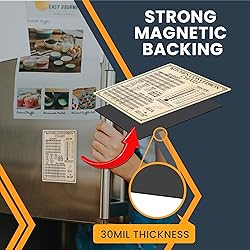 All-in-one kitchen conversion chart; simplify cooking with our comprehensive kitchen conversion chart magnets. Easily convert measurements for ingredients, making recipe prep a breeze. Stick them within sight of your prepping area for a quick reference. Elevate your kitchen’s charm; from measurements to adorable magnets; these magnets add a playful touch to your fridge, dishwasher, toolbox, office board or any magnetic surface inside of your home. Magnets are built to be both useful and aesthetically pleasing Crafted from strong and durable magnetic vinyl; and are built to withstand daily kitchen use. This ensures that the magnet adheres securely to metal surfaces and will maintain its magnetic strength over time. Our magnets are waterproof, strong and durable, which makes them perfect for your kitchen, garage, etc Crafted in the USA; we uphold our commitment to American craftsmanship by producing all our products in the USA Quality and satisfaction assurance; we manufacture our magnets to meet high standards. If you experience anything less than perfection, we ask for you to reach out to us so we can make it right.