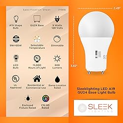 - SLEEKLIGHTING A19 LED Bulb, 5 CCT (2700K, 3000K, 3500K, 4000K, 5000K) Dimmable, UL Listed, GU24 Base - Indoor and Outdoor Use (4 Pack)
