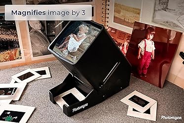 POWERFUL ZOOM - View your slides and film negatives with 3X magnification to enjoy your memories as best as possible, with every detail. BRIGHT LED BACKLIGHT - See images clearly and vividly with a built-in bright backlight. EASY TO USE - Use a dedicated slide slot & negative input to easily load your items and view them instantly. Remove the slides with the quick-eject button on the side. PORTABLE - Display your slides and negatives anywhere. Battery or USB-powered operation - USB power cable (included) or 4 AA batteries (NOT included). USE WITH PHOTOMYNE - Display your slides and negatives in great quality with this device.