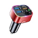 - Syncwire Bluetooth 5.4 FM Transmitter Car Adapter 48W (PD 36W & 12W) [Light Switch] [Hi-Fi Deep Bass] [Fast Charge] Wireless Radio Music Adapter LED Display Hands-Free Calling Support USB Drive, Red