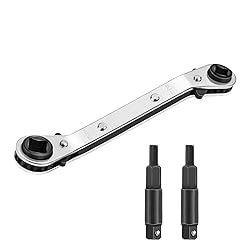 - Package: 1 X Curved Air Conditioning Ratchet Wrench 2 X Hex Bit Adapter Product Fetures: This air conditioning ratchet wrench port with clear size mark for four nut sizes,easy to disinguish the size you need,increases work efficiency Double end of wrench has a quick flip steering lever, which is convenient for adjustment when working. Service wrench set is an excellent tool with a simple appearance, portable and compact, easy to carry, saves time and effort.