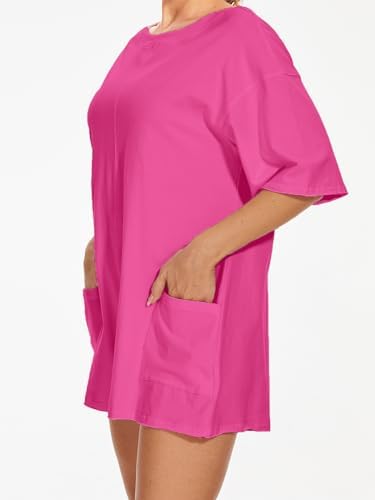 AnotherChill Womens Athletic Romper With Pockets Workout Tee Rompers Backless Oversized Onesie Casual Activewear (Hot-Pink, Small)