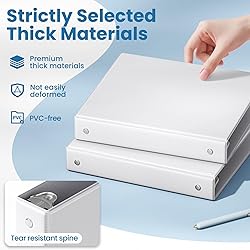 1 INCH CLEAR VIEW BINDERS: 3 ring binder set 12 pack (bulk) is white. The front and back pockets are transparent and can hold up to 8.5x11 paper. The spine of the office binders can also insert some small strips of paper for document classification LONG-TERM PRESERVATION: The 1 inch 3 ring binder with clear pocket cover is made of sturdy material and is moisture and dust resistant. This 1 inch binder is PVC-free and non-stick. The color will always remain without fading during use. The durable rounded edges have a corner grinding process, which effectively prevents wear and tear SUFFICIENT CAPACITY: The paper with 3 holes punched can be fixed securely inside the three ring binder that can hold 175 sheets. And the two pockets inside the 1 inch binders 3 ring clear view cover work well for storing unpunched or scattered papers so they don't get scattered everywhere EASY TO USE: The binder rings switch of the loose leaf binder is convenient. The switch press is polished smooth, so it is not easy to hurt your hand when pressing with two hands. This high quality, sturdy binder meets your binder needs at school, office or home WHAT YOU GET: Your package will come with three ring binder 1 Inch 12 pack (white, bulk). Our binders meet most of your daily needs - storing, recording or reading, and A4 binder makes it easy to load and unload your notes or documents