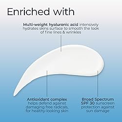 Visibly Smooth Skin: Multi-weight Hyaluronic Acid (combines macro hyaluronic acid molecules with 40x smaller(1) micro molecules) enriched formula to intensively hydrate and visibly smooth skin Smoothing Hydration: Sunscreen moisturizer SPF 30 provides intense, smoothing hydration that lasts all day—for sun protection, use as directed UVA/UVB Protection: Facial moisturizer with Broad Spectrum SPF 30 sunscreen Antioxidant Complex: With Antioxidant Complex helps defend skin against damaging free radicals, for radiant, healthy-looking skin Suitable for Sensitive Skin: Hydrating face moisturizer for all skin types (even sensitive skin), is fragrance free and won’t clog pores Includes one (1) 2.5 fluid ounce bottle of Eucerin Face Immersive Hydration Daily Lotion Broad Spectrum SPF 30 Sunscreen