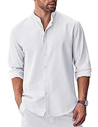 Premium Fabric: This Oxford Shirts for Men is made of soft and lightweight fabric, comfortable, breathable and skin-friendly, that excellent abrasion resistance, no pilling and fray. Men formal shirt provide you with a comfortable wearing experience in all seasons. Classic Design: Men Collarless Dress Shirt fearturing band collar, long sleeve, button down closure and a classic solid color. This Oxford Button Up Shirt adds a touch of sophistication and elegance to your outfit. Easy to Match: Men Long Sleeve Button Down Shirt could be easy to match with jeans, dress pants, casual pants or shorts to create a simple but fashionable style. These casual shirts are great either solo buttoned up or worn unbuttoned over a form fitting t-shirt/tank. Occasions: This Men Casual Button Down Shirt is a great choice for business, casual, daily out, dating, wedding, party, work, etc. Suitable for a variety of occasions. It's also perfect gift for families, friends or boyfriend. Warm Tips: Machine or hand wash are both available for the Men's Chambray Shirt. Wash below Temperature 40°C, avoid bleach. Please select your size according to our size chart images (Not the Amazon Size Chart.The shirts run a little small).