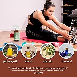 Invigorating Scent: Enjoy a naturally refreshing aroma with every spray. This mat spray neutralizes lingering odors, making your workout feel cleaner and more rejuvenating. Easy to Use: Simply spray on your yoga mat and wipe clean with a cloth. No sticky residue—just a fresh, clean surface. Safe for All Mats: Compatible with natural rubber, PVC, and synthetic mats. Gentle on materials, tough on odors and grime. Clean Ingredients: Made with thyme-infused witch hazel, distilled water, and essential oils including sweet orange, clove, lavender, and vetiver. Convenient & Versatile: Perfect for yoga mats, pilates mats, blocks, straps, and gym equipment. Keep one in your gym bag, studio, or locker.