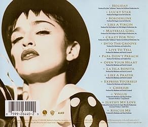 - The Immaculate Collection is the first of Madonna's greatest hits albums, covering all of her classics released between 1982 and 1990, and also featuring two new tracks for the time, which were "Justify My Love" and "Rescue Me". The title follows the religious theme that characterized many of Madonna's songs and live shows during the 1980s. Since the album’s release in 1990 the record has been certified 11x Platinum. Track List: 1. Holiday 2. Lucky Star 3. Borderline 4. Like A Virgin 5. Material Girl 6. Crazy For You 7. Into The Groove 8. Live To Tell 9. Papa Don’t Preach 10. Open Your Heart 11. La Isla Bonita 12. Like A Prayer 13. Express Yourself 14. Cherish 15. Vogue 16. Justify My Love 17. Rescue Me