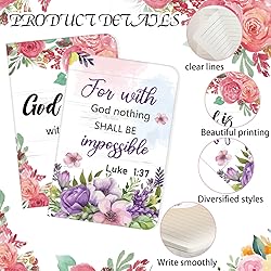 Comprehensive Package for Ample Use: this package includes 12 pieces of inspirational notebooks for women fitted with bible verses in 6 styles, each style with 2 pieces, providing not just one, but a dozen stations where users could write their thoughts, plans, and stories; Each notebook contains 40 sheets of paper, totaling 80 pages Quality and Safe Material: our bible journal for women is crafted in quality paper materials, making them durable and long lasting; This notebook will not easily tear or wear despite everyday use; In addition, the cover of the book is made of about 250g white card with a 4 color printing process and a film on the surface; The inner pages are made of about 80g white paper and double sided horizontal line printing Style That Inspires and Radiates Positivity: the floral print on this inspirational journal for women cascaded with bible verses offers a fresh and particular outlook, making this item beyond mere functional objects, and it inspires creativity, imbibe positivity, and give an ideal boost to one's spiritual Suitable Size for Easy Portability: with dimensions of approximately 5 x 8 inches/ 14 x 21 cm, this bible study journal notebook is ideal for carrying around easily; This easy portability serves as an ideal convenience for users in need of a companion for their jotting down needs whether at school, work, or journeys Ideal Gift: this notebook for bible study notes makes an ideal gift for the festive season; With its appealing design and inspirational elements, it could significantly bring fun, warmth, and positivity to most people you hold dear in these joyful celebrations; Whether for writing daily, organizing notes, or basic scribbling, the sturdy composition ensures a comfortable and convenient writing experience for you