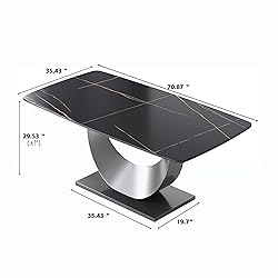 Sdorens Modern Dining Table, 70.8'' Black Dining Table for up to 8, Sintered Stone with Stainless Steel U-Shape Pedestal, Rectangular Dinner Room Table