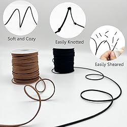 SOFT AND COMFORTABLE - The leather cord is made of high quality faux leather, soft and Comfortable, no creases, washable and colorfast, easy to braid and knot. ELEGANT AND VINTAGE - Black suede cord is elegant and brown suede cord is vintage, strong with a little bit of elasticity, perfect for lace, fringe, decorating, wrapping, making vintage crafts. Suede cords are often used to enhance the fashion appeal of clothing or accessories due to their unique texture and appearance. EASY TO CUT AND STORE - The suede leather cords are easy to cut, tie and knot, packaged in reel wrap, neat and tidy, no mess, can be easily stored, we can cut to any length according to our needs. VERSATILE USE - Leather cords are great for necklaces, bracelets, charms, lace, dreamcatchers, key rings, friendship bracelets, tassels, also suitable for braiding, hanging and beading, as well as decorating and wrapping gifts. EASY TO MAINTAIN - The surface of Flat faux leather string is resistant to dirt, making cleaning and upkeep relatively simple.