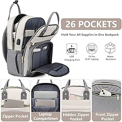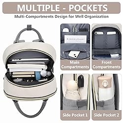 Laptop Backpack Women Work Bag - Travel Backpack Purse with USB Charger 15.6 Inch Nurse Bag College Teacher Business Backpack Waterproof Laptop Bag Beige Grey