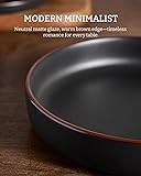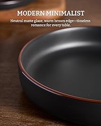 【MULTIPURPOSE BOWL SET】8.5 inches Dia, 33oz capacity, can hold both solids and liquids with ease, suitable for pasta, salads, soups, entrees, desserts and so on., it's definitely a perfect dinnerware set to serve a family breakfast, lunch or dinner. 【AWESOME DESIGN】These pasta bowls are randomly scattered with speckled patterns of various sizes and shades to make each piece unique, and the use of handcrafted brown edges further adds dimension and artistry to the bowl, making it stand out from the crowd. 【MODERN MEETS CLASSIC】Our bowl plates feature modern minimalist style and durable enough for daily use. The neutral color combined with the unique edges make every dinner seem warmer and more romantic. 【BEST CHOICE】This stoneware set makes for a thoughtful and practical option for your loved ones, offering them an elegant dining solution that combines functionality with visual charm for special occasions or everyday use. It's a great choice for housewarmings, holidays, weddings, and fun celebrations. 【FOOD GRADE GLAZE】All of our ceramic bowls are made of food grade glaze, no need to worry about any harmful substances leaching into your drinking or food, just use them with confidence. 【DISHWASHER AND MICROWAVE SAFE】Famiware pasta bowls are made of high-quality stoneware. Each bowl is dishwasher and microwave safe. 【STURDY AND RELIABLE】These kitchen bowls are made of organic and natural clay, fired at 2340℉ for 13.5 hours to make it sturdy and reliable. The dinner bowls boast a commendable weight and thickness, echoing the quality of their craftsmanship. 【STACKABLE & EASY TO CLEAN】These dishes are stackable and don't take up a lot of space in your cupboard. Easy to clean, you can wash them with foam and water or place them into your dishwasher. 【FAMIWARE' S PROMISE】We promise to send you replacements if you receive some pieces that is damaged during shipping, simply send us a message on Amazon and our service is available daily to hear your request. Thanks for choosing Famiware! Famiware is dedicated to creating healthy and safe dinnerware that turns every time you cooking and eating into a warm experience.