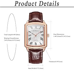 ACCURATE TIME KEEPING - Imported quartz will always tell you accurate time in occasion, business, or other important places, combined with long lifetime imported silver oxide button cell batteries. PAIR WITH ANY OUTFIT - This simple and classical design women watch will go great with any outfit and any occasion. It enables you to easily spice up a normal outfit and add style to your life. ADJUSTABLE SOFT STRAP - When you receive a new watch, please blow the strap with the hot air of the hair dryer. Then the strap will be softer and more comfortable when you wear it.Total length 9.44inch(24cm); Case length*width: 1.49inch(3.8cm)*1.26inch(3.2cm); Case thickness: 0.39inch (1cm); Strap width 0.7inch (1.8cm) GREAT PRODUCT - Please feel free to contact us if you have any question. We will try our best to solve any problem. LIVING WATERPROOF - It can withstand splash water, but do NOT wearing it when showering or swimming, or rainy days, try to keep it dry all the time.