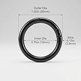 MULTIFUNCTIONAL USE: Ideal for keys, bag charms, and small craft connections. PRECISE SIZE: Outer diameter 1.02 in, inner 0.75 in, fits hole ≤0.7 in. STURDY BUILT: Made of strong steel with a smooth matte black finish. EASY TO USE: Spring design enables quick attachment and secure closure. LIGHT DUTY PURPOSE: Best for everyday keychains and light accessories.