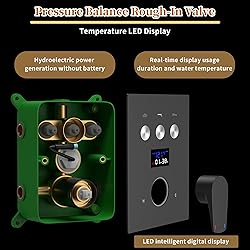 Luxury Shower System with LED Temperature Display:Show you the temperature of the water and time of use, which can help you to find the most comfortable water temperature and Control your bath time. No electricity no battery, powered by water flow, can use together Push Button Diverter: Replacing the traditional controller to a push-button diverter. The new mechanism ensures users don’t accidentally switch to the wrong mode with slippy hands. Additionally, with the help of the new button design, users can enable rainfall shower mode, Body Jets mode and handheld shower spray simultaneously in their preferred shower scenario 6 PCS Shower Body Spray with On Off : Great Water Flow, Comes with the "OFF" Position, Control them independently. Rotate the little handle on the neck of the spray to adjust the water flow or on/off, allow high pressure massaging effects Certified Anti-Scalding Shower Valve and Safe Shower System: AYIVG shower system is made with your family’s safety in mind. Equipped with pressure balanced shower valve, it ensures quality, longevity, and prevents burns due to sudden fluctuations in hot or cold water temperature High Quality SATISFACTION AFTER SALES SERVICE 5 YEAR:AYIVG brand is with you, regarding our full body shower system, if you have any problems during installation/use: missing accessories, damage or the product does not work properly, please contact us at the first time, we will surely provide you with the most satisfactory soluti.