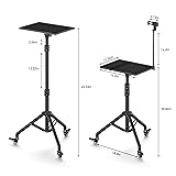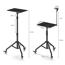 Projector Stand on Wheels: This projector tripod comes with three high-quality silent casters that swivel freely through 360° for incredibly smooth movement. All casters are lockable to increase the practicality and safety of this product. And the wheels are removable design, if you want to fix the tripod in one place, you can not install the laptop tripod casters Excellent Stability Tripod for Projector: This projector tripod is made of sturdy metal and can hold up to 22 pounds. We did a lot of experiments to improve the weight capacity of the projector tripod and finally chose to release this new projector tripod Laptop Floor Stand Adjustable: With a height adjustable between 29-44 inches and a projector tripod stand tray that is 180° adjustable, this projector stand tripod provides the best viewing angle whether you use it for office or home entertainment, this unit is essential for you Protable Laptop Tripod: This laptop stand tripod is very simple to remove and set up, making it perfect for use at home, on stage or in the studio, indoors or outdoors Multifunctional Tripod with Wheels: Extra-large removable top tray (15" x 11") accommodates a variety of devices such as projectors, laptops, music players, and DJ equipment for everyday use