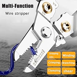 - Multifunction Wire Plier Tool, Multi Function Wire Plier Tool, Multifunction Wire Stripper Pliers, 6 in 1 Multifunctional Wire Stripper SPECIFICATION ⭐Material: High Quality Alloy Steel ⭐Total Length: 188mm ⭐Opening Range: 50mm ⭐Stripping Diameter: 0.8-2.8mm ⭐Weight: 180g PACKAGE INCLUDED 1 × Multifunction Wire Plier Tool NOTESPlease allow slight measurement deviation due to manual measurement.Due to different display and lighting effects, the actual color of the item may be slightly different from the color shown on the picture.