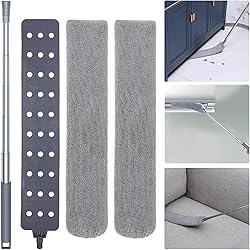 ✔【18" Bendable Head】The Slim Duster is the perfect cleaning tool for hard to reach places. The long flat profile easily glides between and under kitchen appliances, washer, dryer and deep cabinets,Easily removes dust that conventional feather dusters can't reach ✔【Aluminum Telescopic Extension Pole】Made of premium aluminum to ensure lightweight, rust-proof, sturdy and durable. Can be adjusted according to your needs for height. REACH UP to 55 in when fully extended which is enough to clean even highest gables without extra ladders or broom. ✔【Detachable Microfiber Cloths】Your microfiber cloths are Machine washable for super simple clean up once the washing is done. Cloth cover is designed with elastic openings, not easy to fall off. The thick microfiber cloth with super strong water absorption performance, will be no stains when cleaning and used as a rag.you can apply it repeatedly! ✔【Easy to Use】Generously sized microfiber head cleans large surfaces quickly, it becomes electrostatically charged as you use it, attracting dust and hairs with ease. Use it wet or dry to get your space spick-and-span.These practical scrub brushes are suitable for use in kitchens, bathrooms, laundry, and garages. They can also be used to clean floors, showers, tiles, toilets, carpets, upholstery, countertops, sinks, bathtubs and stovetops. ✔【Easy to Storage】Just remove it by twisting the pole counterclockwise, then put it into the cabinet without taking up limited space. If you need to use it frequently, the top of the gap dust comes with a hanging hole, you can also hang it directly. This design is not only convenient for you to allow the brush to dry naturally after cleaning, but also saves space when not in use.