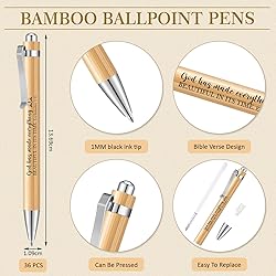 - Features: Each bamboo ballpoint pen in this set features a refill of black 1mm tip ink. It ensures a smooth writing experience and is designed to avoid unwanted ink leaks, allowing you to keep your focus on the sacred texts. Our pen is made from strong bamboo, ensuring its durability, while the notebook set is made of quality paper with clear horizontal lines on a smooth surface for easy writing. These materials deliver a delightful writing experience while promising longevity for sustained use. Specifications: Material: bamboo and paper Color: as the picture shown Size: Bamboo pen: 5.51 inches/ 14 cm Notebook: 3.94 x 5.51 inches/ 10 x 14 cm Package includes: 36 x Motivational bamboo pens 36 x Inspirational notebooks Notes: Manual measurement, please allow slight errors on size. The color may exist a slight difference due to different screen displays.