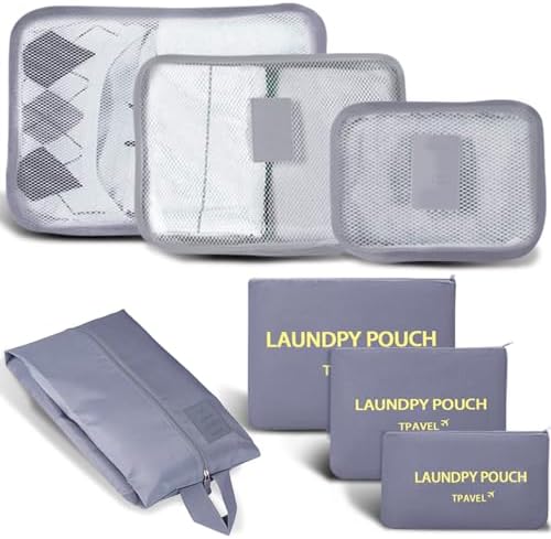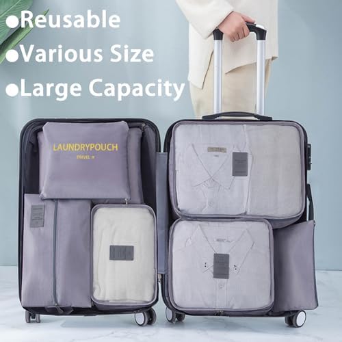 INVODA 7 Set Packing Cubes for Suitcases Travel Essentials for Carry on Luggage Organizer Bags Set for Travel Accessories Luggage Cubes (Grey)