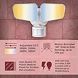 20W LED Flood Security Light with Motion Sensor. 4 Color Lamp Settings (3000K, 3500K, 4000K & 5000K). with 2,000 Lumens and 180° Motion Detection up to 70Ft Out. (White)