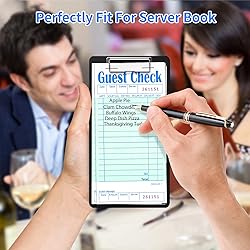 【PORTABLE SIZE】 Guest check books size is 6.69''×3.15'', perfectly fit for waiter checkbook and these notepad can be easily carried in a pocket or apron, ensuring that server always has them on hand when needed. Suitable for restaurant, hotel, cafe wait 【RECORD INFORMATION】 Each ticket has a unique serial number printed at the top, date, order details, number of guests, order amount, table No.etc. Our server note pads also have prompts for appetizer, soup or salad, entree, dessert, and beverage. 【DETACHABLE RECEIPT】 Food receipt book designs with a tear-free dotted line that makes each check easily tear from the ticket book that can serve as customer's receipt or keep for record. We've provided extra rows on the back for additional note taking. 【HIGH QUALITY】 Thickened paper, The waitress notepad has a fresh and bright green design, which makes them no longer monotonous. Their whole page printing has clear handwriting and a reasonable layout. Make your writing easier and work more satisfactory. 【WHAT YOU GET】 You will receive a 5 pack of restaurant order pad, 50 sheets per pack, total 250 sheets. If you have any problems, please feel free to contact us and we will help you solve the problem within 24 hours.