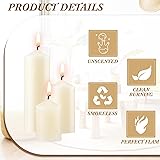 - Features: Dripless and smokeless: A noteworthy feature of these long burning candles is that they are dripless and smokeless, offering a clean space. This ensures that they don't create unnecessary mess and makes them a hassle free addition to your decor. The smokeless feature also ensures a healthier environment for you and your loved ones. Elegant ivory shade: Each of the smokeless candles in the pack flaunts a pleasing ivory shade, which blends seamlessly with your decor style. The neutral color palette of these candles effortlessly enhances the ambiance of your space, creating a warm and inviting atmosphere. Specifications: Material: paraffin, cotton wick Color: ivory Size: About 2 x 3 inches/ 5 x 7.5 cm About 2 x 4 inches/ 5 x 10 cm About 2 x 6 inches/ 5 x 15 cm Package includes: 54 x Ivory pillar candles Notes: Manual measurement, please allow slight errors on size. The color may exist a slight difference due to different screen displays. Keep our products out of skin contact and away from little ones and pets.