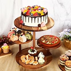 - Features: Harmonized design: The matching set of the wood cake stand, dinner plates, and serving trays provide a harmonized look. The cohesive design gives your serving style an elegant touch, impressing your guests at any event. The set's design is a testament to thoughtful craftsmanship aimed at achieving aesthetic consistency and visual delight. Aesthetic appeal: The dessert stand set is not only functional but also a nice decoration. Its beautiful design and wooden finish make it an ideal centerpiece for any event. The 4 tier design of the cupcake stand adds a touch of elegance and charm, enhancing the overall appeal of your food presentation. The aesthetic appeal of this product is as commendable as its practicality. Specifications: Material: wood, bamboo Color: as shown in the picture Size: Cupcake stand: as shown in the picture Serving platter: about 10 inches/ 25 cm in diameter Serving tray: about 12 inches/ 30 cm in length Package includes: 1 x Cupcake stand 1 x Serving platter 2 x Serving trays Notes: Manual measurement, please allow slight errors on size. The color may exist a slight difference due to different screen displays.