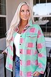 SELINK Shacket Jacket for Women Casual Plaid Pattern Oversized Shacket Long Sleeve Collar Daily Outerwear