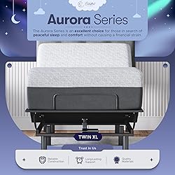 - Enjoy supportive comfort with the Celestial Aurora Adjustable Bed Base and 12-inch gel memory foam mattress bundle, thoughtfully designed for breathable rest and flexible positioning. Smooth articulation, zero-gravity relaxation, and programmable memory settings allow effortless customization through the wireless remote. The CertiPUR-US certified mattress enhances pressure relief and consistent nighttime comfort. Strong construction and easy setup provide dependable everyday performance. Comprehensive protection delivers long-term reassurance and value.