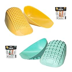 - What’s better than 1 pair of heel cups? 2 pairs! This heel cup kit includes 1 pair of our Tuli’s Classic Heel Cups and our Tuli’s Heavy Duty Heel Cups. Tuli’s Classic Heel Cups are ideal for those suffering from heel pain and aching feet. Tuli’s Classic Heel Cups work best in all shoes because they are supportive yet flexible enough for any shoe. You can have lightweight support and cushioning all day for any daily activity. They are ideal for treating plantar fasciitis, Achilles tendonitis, shin splints, and general heel pain. Tuli’s Heavy Duty Heel Cups are twice as thick as our Classic Heel Cups and offer maximum performance and protection when you need it the most. Tuli’s Heavy Duty Heel Cups offer all the comfort you expect from our Classic Heel Cups while delivering the heavy duty protection you need from heel pain during sports activities such as volleyball, soccer, basketball, and tennis. These sever’s disease heel cups work best in athletic shoes, cleats, work boots, and more spacious lace up shoes. They are ideal for treating plantar fasciitis, Achilles tendonitis, sever’s disease, shin splints, and general heel pain. Both heel cups are bio-mechanically designed and have multi-cell, multi-layer design that absorbs shock and returns impact energy just like the system naturally found in your feet. These heel cups provide immediate heel pain relief by cushioning the area of pain and elevating the heel bone. The additional cushion and elevation you get when you use these plantar fasciitis heel cups allow you to prevent and treat problems like sore heels and shin splints. We’ve scientifically duplicated the shock-absorbing design naturally found in your feet to maximize shock absorption and keep the back, feet, knees, and hips in alignment. For best results, allow time to become familiar with the feel of your heel cups. Best worn outside of socks. Refer to the Sizing Guide for the best fit. The heel cup does not adhere to your feet – Should be worn with shoes.