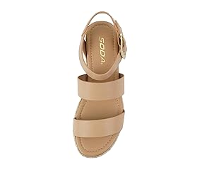 Soda Top Shoe Bryce Open Toe Buckle Ankle Strap Espadrilles Flatform Wedge Casual Sanda