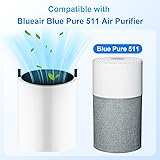 【Compatible Models】: The 511 replacement filter is only compatible with Blueair Blue Pure 511 Air Cleaner to maintain its peak performance. Fit snugly with the machine. It works as well as the original with the same performance, keeping your 511 air Cleaner at its best working efficiency and capacity. Any use of the brand name or model designation for this product is made solely to demonstrate compatibility 【𝐍ote】: 𝐃o not fit 511+, 𝟓𝟏𝟏 𝐀uto, 𝟓𝟏𝟏i 𝐌ax, 𝟑𝟏𝟏 𝐀uto,𝟒𝟏𝟏, 𝟒𝟏𝟏i 𝐌ax, 𝟐𝟏𝟏i 𝐌ax, 𝟑𝟏𝟏i 𝐌ax, 𝟑𝟏𝟏i+𝐌ax 【Premium Material】: Our 511 air filter replacement is made of high-quality non-woven fabric with premium True HEPA and activated carbon materials to greatly improve the performance of 511 filter replacement. We adopt advanced lower energy consumption and lower density structure technology, higher efficiency, and less pressure to ensure high-efficiency filtration 【3-In-1 Stage Filtration System】: Our 511 True HEPA replacement filter is combined with a high-efficiency filtration system that has 3 layers of advanced filtration that removes high levels of fine particles and reduces odors. Fine Pre-filters can capture large particles of material such as hair, and pet plush. An extra protective layer of coating True HEPA filter captures 99.97% of airborne dust down to 0.3 microns in size, like dirt, dust, and pet dander. 【Replacement Frequency】: The 2 Pack 511 replacement filter fully meets your needs for the replacement of 511 filters. To maintain optimal performance, We recommend you replace your 511 replacement filter every 4-6 months. Meanwhile, the filter's usage time will depend on the environment and air quality around you. 【Easy Installation】: It is fairly easy to install the 511 replacement filter, no tools are required. Take out and replace your machine unit when needed. B08KPJCDN6, B08KPJMSKP, B08KPKWFVL, B08KPJ9C8W, B08KPFWBGM