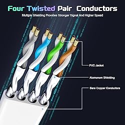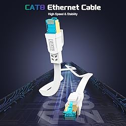 High Speed 40Gbps 2000Mhz: Cat 8 Ethernet Cable supports bandwidth up to 2000MHz and 40Gbps data transmitting speed. High-speed data transfer for server applications, cloud storage, online HD video streaming, and gaming without any lag or stop. Cat8 Ultra-High-Speed Patch Cord, outperforming Cat7/Cat6/Cat5 standards, eliminates latency concerns. Wide Compatibility: Cat8 ethernet cable is fully compatible with Cat7, Cat6e, Cat6, Cat5e, and Cat5 patch cables.Cat8 high-speed ethernet cable, suitable for network switches, modems, routers, computers, laptops, PS3/PS4/PS5, X-Box 360, X-Box One, TP-Link, switch, ADSL, network adapters, hubs, coupler, networking printers, VoIP phones, smart TV, IP cam,and other devices with RJ45 connectors. Flat Design & Flexible High Quality PVC Jacket: Cat 8 Flat Ethernet Cable adopts a unique flat and thin design, which allows for a cleaner and safer installation. Whether you want to install it under the door, through the window, or hidden under the carpet, it can be done very easily. Cat8 RJ45 cable features a premium, flexible, UV-resistant PVC jacket that combines durability, flexibility, water resistance, corrosion resistance, and aging resistance, suitable for both indoor and outdoor environments. Anti-Interference Design: Professional internet cables are made of 4 shielded foiled twisted pair(S/FTP) copper wires with a 50 micron 24K gold-plated RJ45 connectors on each end. Compared to the Cat 7 network cable, Cat 8 shielding cable design significantly reduces interference and crosstalk between adjacent pairs and surrounding cables, enabling faster and more stable network transmission speeds. Our customer service:Premium design with great quality. Each of our cat8 flat cables is supplied with free cable clips for you to secure the wires.18 months warranty with lifetime welcoming customer service.