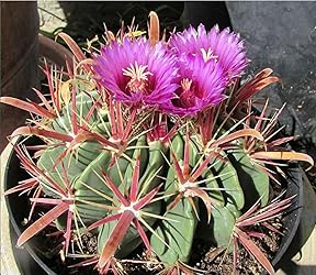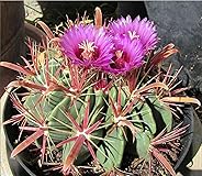 Devil's Tongue Barrel Cactus (Ferocactus latispinus) - Live Plant - Violet Flowers - Flat Barrel Shaped