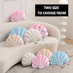 【Seashell Decorative Pillow】Different from ordinary decorative pillows, this throw pillow uses the appearance of seashell design, it looks more design and three-dimensional. Put this seashell pillow in your bedroom, sofa or chair to add a different ocean feel to your home.If you are looking to decorate your home, this shell pillow is a good choice 【3D Cute Throw Pillow 】This seashell pillow is made of comfortable velvet fabric, which feels ultra-soft and skin-friendly. This cute pillow is full filled with high-quality PP cotton soo it won't deform easily,When you lie down on the couch or chair, you can put this decorative pillow behind you so you can relax against it 【Multicolor&Size】This cute seashell pillow comes in two different sizes:Small size-14 X 11 inch, Large size 18 X 13 inch.The small decorative pillow is perfect for children's rooms, for children to hold. Large pillows are suitable for use on sofas or chairs. You can also choose from a variety of colors 【Warm Gifts】The shell shaped pillow is a good gift for many occasions, such as birthday, Christmas, Children's Day, Valentine's day, Thanksgiving day.The throw pillows is perfect for adults, children and seniors 【Machine Washable & Easy Care】This throw pillow can be machine washable in the gentle cycle with cold water separately. Tips: Due to the pillows being packed in a vacuum bag, it needs 1-2 days to recover fluffy shape after opening the package.Just leave it and wait, you will have an interesting throw pillow that won't let you down
