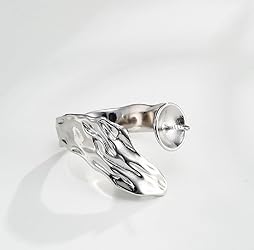 KOICCVQQ Irregular 14K Gold Bezel Blanks Cabochon Base Setting for Ring Design Handmade Dainty DIY Pearl Birthstone Jewelry Making Supplies for Cocktail Halloween Christmas (Silver)