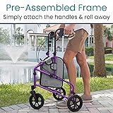 Vive Mobility 3 Wheel Walker - Three Wheeled Rollator for Seniors - Lightweight, Foldable, Narrow, Heavy Duty - for Elderly Men Women - Folding 3-Wheel Tri Scooter with Basket Bag