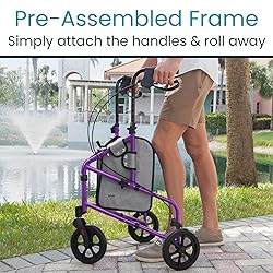 UPGRADED SUPPORT & MANEUVERABILITY FROM A TRUSTED BRAND: The Vive Mobility 3-Wheel Walker offers the perfect combination of stability and maneuverability. With a wide distance between its back wheels and a stable cross-brace design, it provides reliable support whether you’re standing still or walking. Enjoy reliable navigation in small spaces and crowded areas. FOLDABLE, LIGHTWEIGHT, & EASY TO TRANSPORT: Effortlessly fits in your car with a lightweight and foldable design. CUSTOMIZABLE FOR YOUR COMFORT: The height adjustable handles allow you to find the perfect fit--ensuring that your hands are at a natural angle for comfort and better brake access. AMPLE ACCESSORY STORAGE: The included stylish grey bag is removable, easy-to-clean, and lets you easily store anything. VIVE LIFETIME GUARANTEE: We stand behind the durability and longevity of our Vive 3-Wheel Walker–which is why we offer a LIFETIME GUARANTEE for your peace of mind.