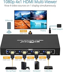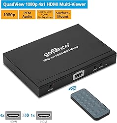 gofanco 1080p 4x1 HDMI Multi Viewer (QuadView) with Remote – 4 HDMI Inputs (Devices) & 1 Output (Display), Up to 1080p, Quad/Dual/Single Modes, PCM, Audio Switching, Surface Mount (QuadView)
