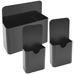 Premium Material: Our magnetic pen holder is made of high-quality ABS resin material, lightweight, and can be used for a long time. The back of the magnetic pen holder has magnetism, which can be connected to smooth magnetic and metal surfaces. They help save space and store small items, making it easy to use. Strong Magnetic: There is a complete and powerful magnet on the back of the magnetic pen holder, ensuring that it can easily and firmly adhere to metal and magnetic surfaces, such as refrigerators, whiteboards, etc. Note that it only applies to smooth surfaces of metals or magnets, not to glass or plastic surfaces. Widely used: Our magnetic pen holder is very suitable for storing markers, pencils, pens, erasers, and other office supplies. It can also be used on whiteboards, refrigerators, lockers, or other metal surfaces. Help you store and save space at home, in the office, or at school. Adjustable divider design: There is a movable divider and 3 slots inside, which can divide the space of the magnetic bracket and change the size of the compartment. The separator can also be disassembled according to your needs, with larger storage space, simple and practical. Packing list: You will receive 3 black magnetic pen holder available in two sizes, approximately 12x5.5x2.7cm/4.7x2.1x1 inches and 11.8x12.5x4cm/4.9x4.6x1.5 inches, which can be firmly adhered to metal or magnetic surfaces, making it an ideal choice for storing small items and stationery.